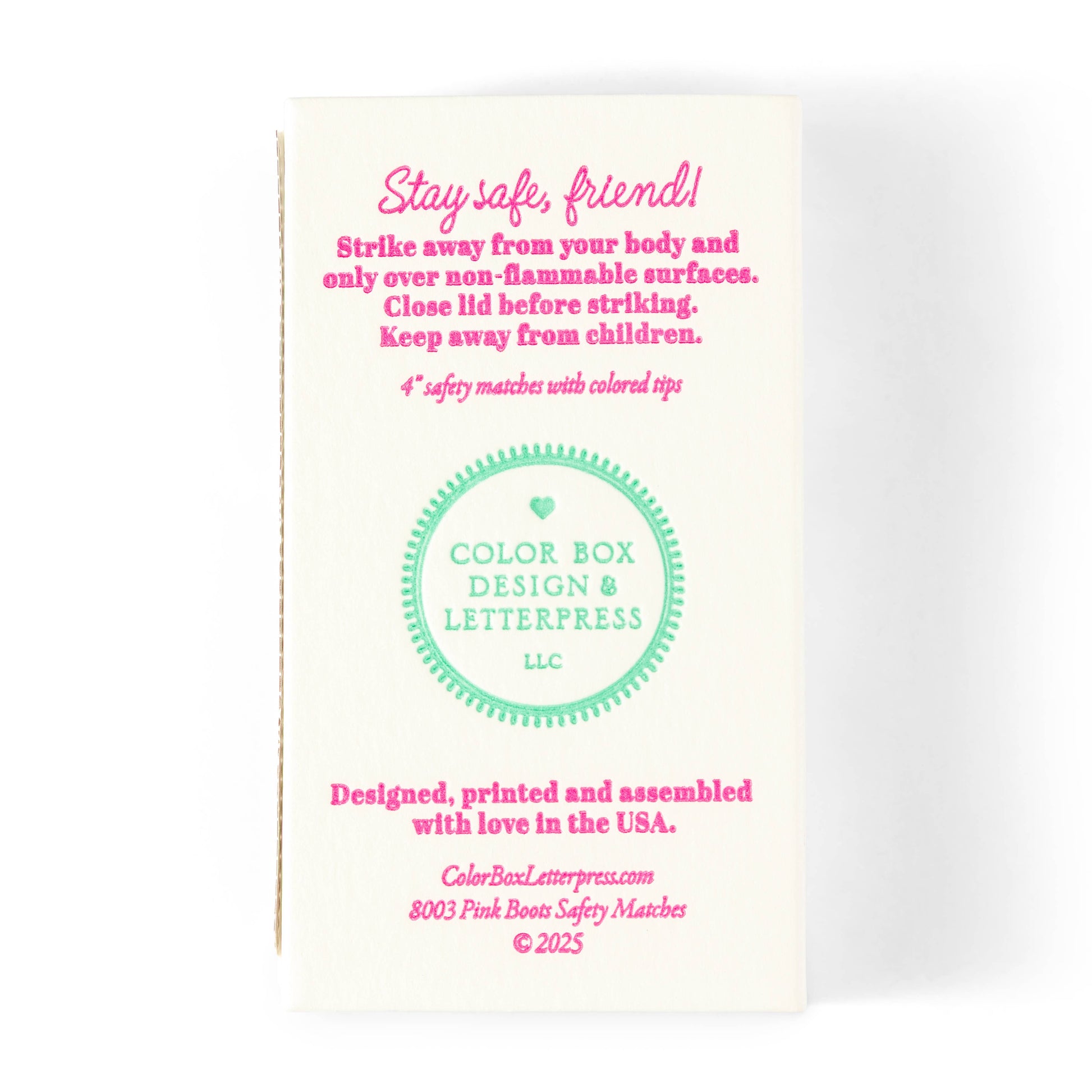 Decked out in hot pink floral cowboy boots, this matchbox is a little bit country, a little bit cool, and all kinds of charming. It brings Western flair with a bold, modern twist—letterpress printed for that rich texture that makes it just as giftable as it is functional.