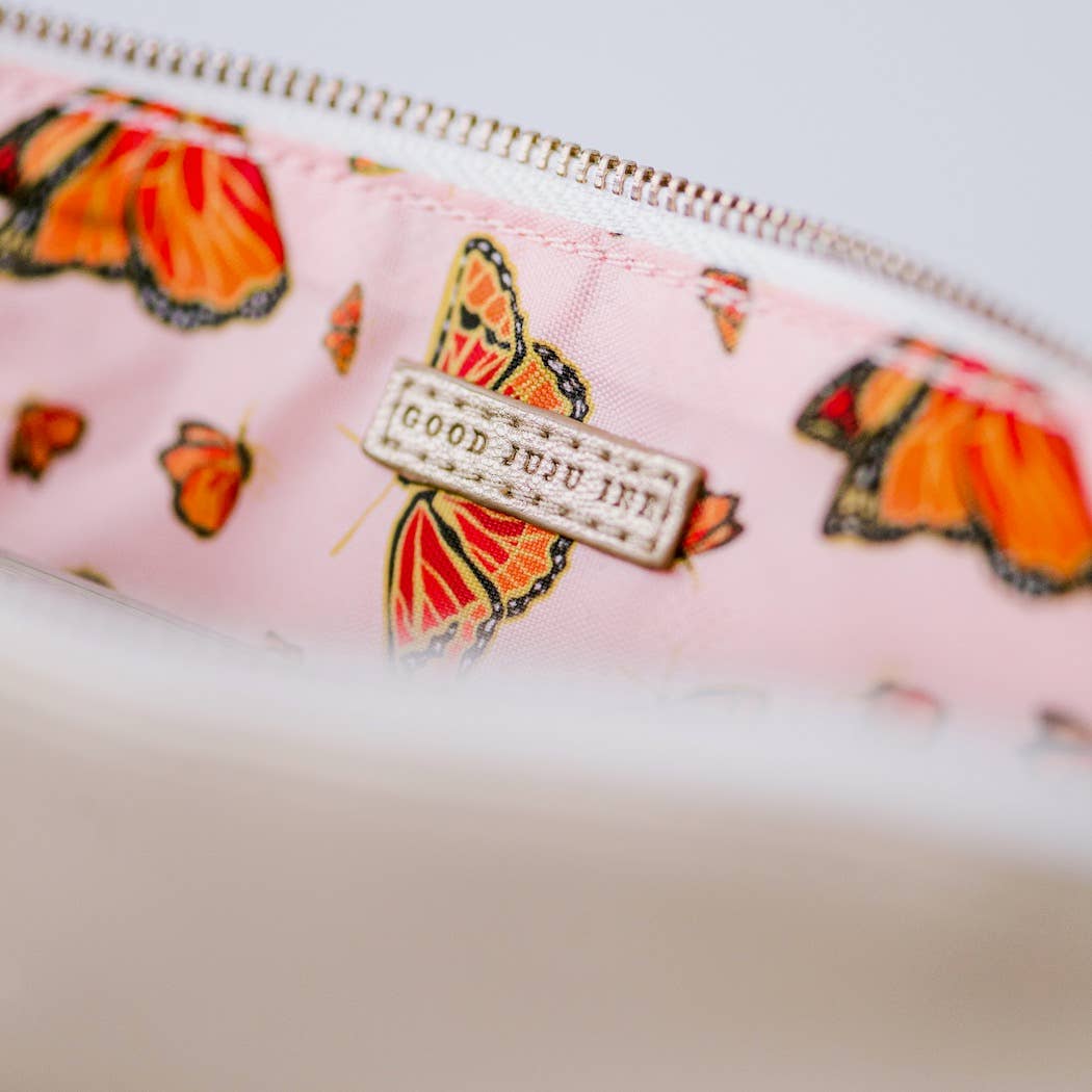 -Pencil pouch features butterflies pattern interior