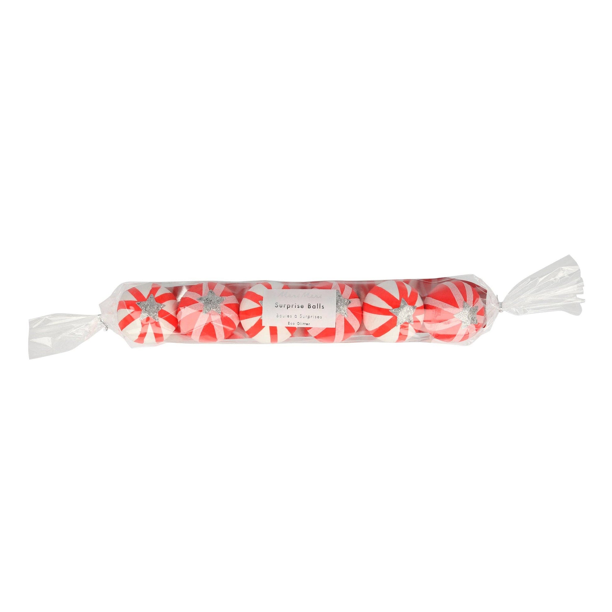 * Covered with red and white crepe paper, and topped with plant based silver glitter star stickers * They are tied with shiny silver foil * Each contains a red, silver or pink party hat, a self-adhesive mustache, 2 festive stickers, and a red and white friendship bracelet * Made using Plant-based glitter (>95% cellulose) * Suitable for ages 3+ * Pack of 6 in 2 designs * Product dimensions: 2 x 2 x 2 inches