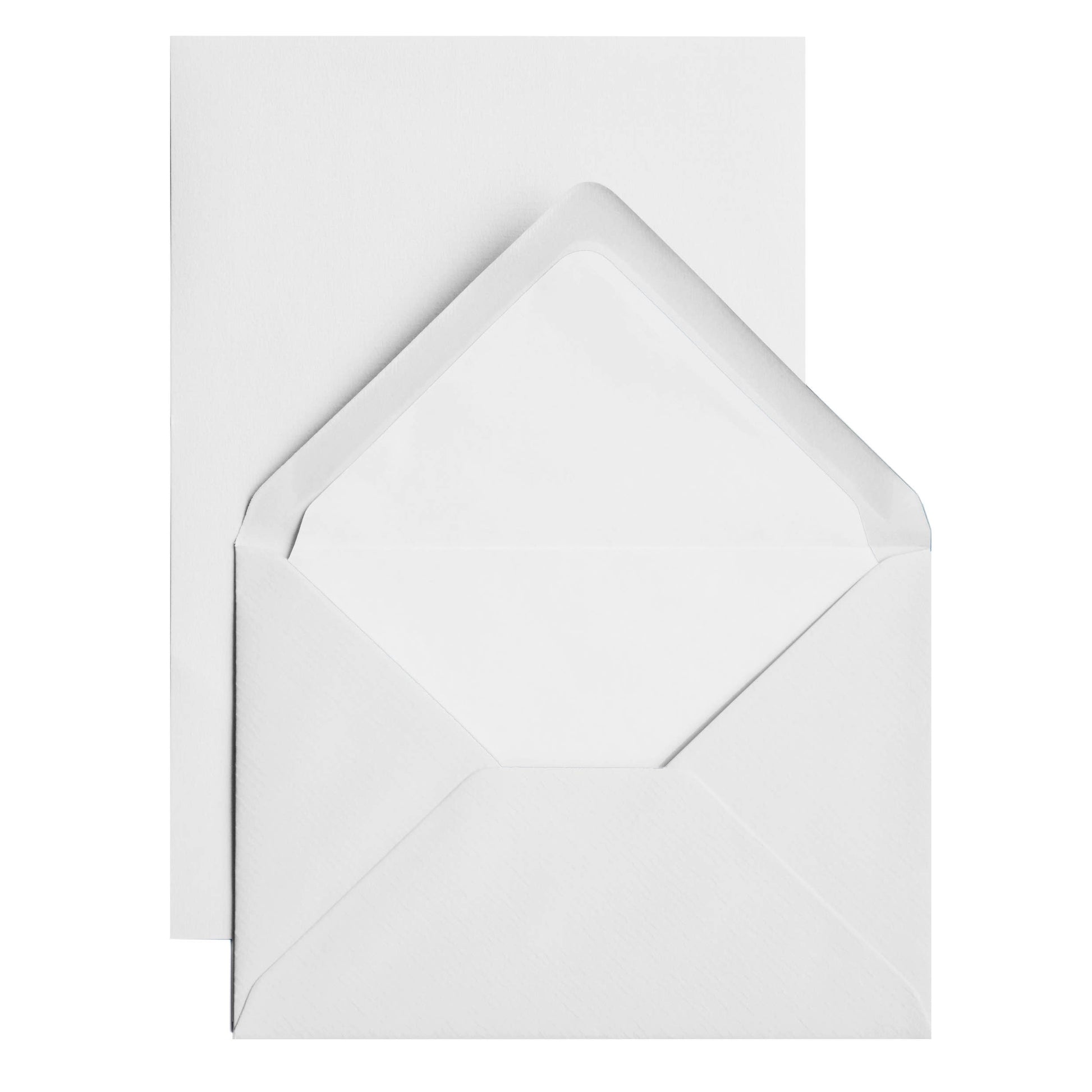 The 25, crisp, 100g "classic" laid finish writing sheets have are plain edge. They are banded and stored with matching white tissue lined envelopes in a substantial silver foil box. The writing sheets are a European A5 size (5.75"x8.25"), perfect for "modern" letter stationery - not too long, not too short. Personalize with a professionally printed name or monogram. Ink-jet compatible. Made in Belgium. Imported by OrangeArt.