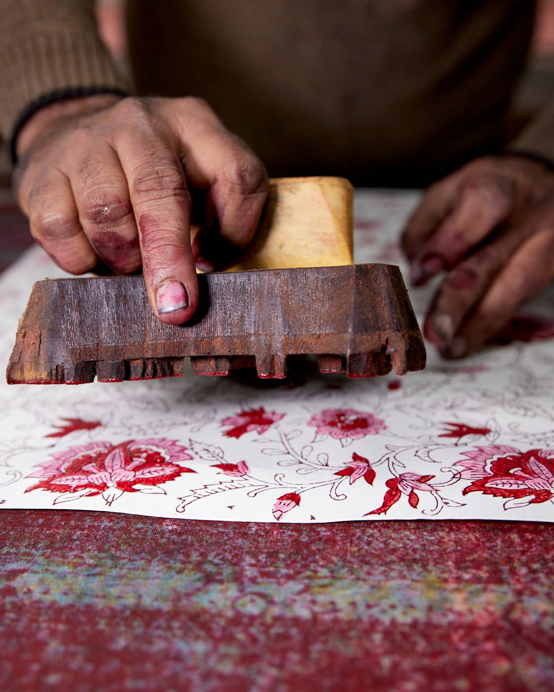 Our hand block printed gift bags are made from a strong 250gsm recycled cotton card paper in colours and designs complementing the gift wrap range. The bags are block printed using traditional techniques, and are not digitally mass produced. The cotton rope handles enhance the artisanal look of the bags and the matching swing tag carries a short blurb about the story behind the bags. Size - Small H14 X W14 X D7cm 100% recycled cotton paper.